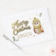 Cute Gold Glitter Merry Christmas Owl Rectangular Sticker