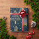 Cute Festive Blue Gold Christmas Tree Pattern Wrapping Paper.
