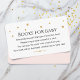Cute and adorable insert card "books for baby" featuring sprinkled gold stars and classic typography. Back of the card is solid blush pink with customizable text for the honor of the baby shower.