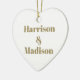 Cute gold and white custom couple’s names typography modern elegant heart Ceramic Ornament. Available in many shapes and materials.