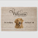 This Golden Retriever dog doormat is the perfect gift for any doodle lover. This design is complete with the words "Welcome to our home", a place to add your name and your dog's name, and an adorably cute Golden Retriever watercolor graphic. Enjoy!