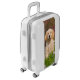 Golden Retriever puppy in a meadow of Cuckoo Flower. He is such a cute Goldie, I had a lot of fun taking pictures of him. Golden Retrievers are very smart and loyal dogs. This carry-on luggage suitcase is a gift idea for dog and pet lovers. A puppy-eyed doggy photo taken by Katho Menden. http://www.zazzle.com/kathom_photo