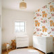 Infuse your child's room or nursery with joy and whimsy with our adorable golden retriever puppies and floral peel-and-stick wallpaper. Perfect for creating a happy and inviting atmosphere, this charming wallpaper is the ideal choice for parents looking to add a touch of playful beauty to their home. Our wallpaper showcases an enchanting scene with hand-drawn golden retriever puppies, surrounded by cute pink flowers and playful paw prints. This delightful design is sure to bring smiles and warmth to any room. Designed by Moodthology