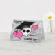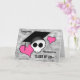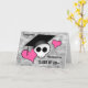 Super cute Gothic skull wearing a cap and 2 hot pink hearts and gray grunge greeting card for the graduate teen girl.