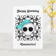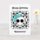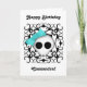 Adorable Gothic punk skull wearing a light blue blow on a black swirly Victorian kaleidoscope background. Shown here on a pretty white birthday card for teen or tween girls. The text is customizable. Please change it before ordering.