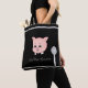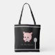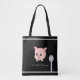 Cute gourmet little pig with spoon on black background Tote Bag. Le Petit Gourmet text can be customized.