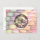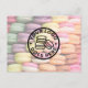 Cute Colorful Macaron Cookie Grand Opening Bakery Postcard. Welcome new customers to your bakery or confectionery with this colorful card. Change out all of the text and logo. These sweet French meringue-based confections are filled with a tasty center to create a deliciously sweet cookie sandwich.