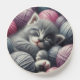 Cute Gray and White Kitten Napping in Yarn PopSocket