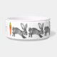 My watercolor painting of a soft gray bunny rabbit in a large format pattern makes a creative bowl for any pet, but especially for your pet rabbit! It has a neutral gray and white look. Bunny also has a brown eye and blush pink ears. Customize with your pet's name between the two carrots - it's easy to personalize using the text template and edit menu. This bowl has no rim, so your bun can't pick it up and dump it. Perfect for anyone who likes rabbits, animals and nature. Whimsical, unique, original artwork & design by Tuzi Williams.