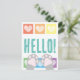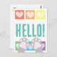 Cute Gray Cat Paws Up Rainbow Hearts Hello Postcard