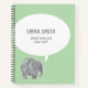 A cute, gray elephant with a simple white speech bubble smiles on a light grassy green background. Personalize the text to make this a kid friendly notebook perfect for school or home. Don't forget to add your contact information in case the notebook gets lost somewhere.