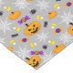 This table runner features a cute and fun Halloween pattern with pumpkins, candy, spiders and spiderwebs over a light gray background. Perfect for your Halloween party!