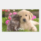 Cute Gray Kitten Love Puppy Dog Golden Retriever Rectangular Sticker