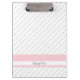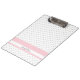Cute and trendy! Tiny gray polka dots on white clipboard, personalized on the white and pink ribbon across the bottom. Perfect for yourself to add a little spark to your office, or makes a nice teacher gift!
