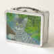 Cute Gray Stripe Green eyed Cat Climbs a Tree Metal Lunch Box