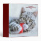 Christmas themed binder with a cute Christmas photograph of a gray tabby cat playfully biting a red santa hat.