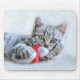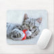 Cute Gray Tabby Cat w/ Christmas Hat Xmas Mouse Pad