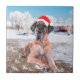 Cute Great Dane Dog Sitting In Snow Christmas Hat Tile