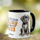 "You Make My Tail Wag" declares this cute mug with an adorable gray black Great Dane puppy dog sitting on each side. Cute for the Great Dane dog owner or fan! You can add someone's name at the bottom middle, or delete the text, if you'd like.