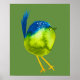 Cute watercolor bird original art illustration. Whimsical colorful green bird art.