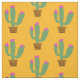 Cute green cactus plant with flower in pot pattern Fabric. Colorful design for DIY projects, clothing and more. Make your own textile. Yellow or custom background color.