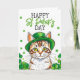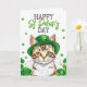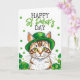 Cute Green Cat with Shamrocks St Patrick's Day Card
