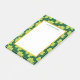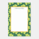 Sticky notes with a cute repeating pattern with olive green clovers on a dark green background. A white rectangle layered over top with a faux gold foil border. Personalize with your own text.