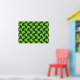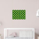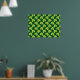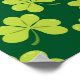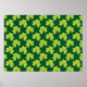 A poster with a cute repeating pattern with olive green clovers on a dark green background.