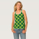 A top with a cute repeating pattern with olive green clovers on a dark green background.