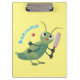 Cute green cricket insect cartoon illustration clipboard