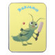 This cute green cricket loves to play sport. Drawn in happy buggy cartoon style.
