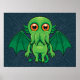 Vector cartoon illustration of cute green baby Cthulhu monster with big orange eyes. Tags: cthulhu, octopus, monster, lovecraft, chibi, squid, sea, ocean, animal, creature