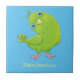 Cute green curious parakeet cartoon illustration ceramic tile