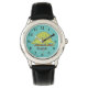 The leather band makes it seem like an “older kids” watch. Easy to read the time. Clear printing and image.