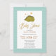 Cute Green Dinosaur Gold Script Baby Shower Invitation