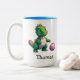 Cute green dinosaur with Easter eggs Two-Tone Coffee Mug