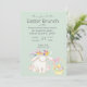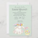 Cute Bunny Basket Easter Floral Brunch Invitation on a mint green background. This adorable design is sure to please your guests invited for brunch on Easter morning.