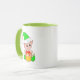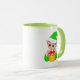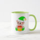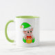Cute green elf holding a gift box on white background Mug. Name can be personalized. Ideal for St. Patricks Day