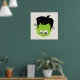 A poster with an adorable frankenstein monster face. He has big eyes and a little smile with a scar across his forehead. Classic bolts sticking out from the sides of his head. This guy is really cute and not scary at all.