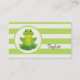 Cute Green Frog on Striped Pattern Business Card