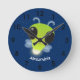 Cute green glow bug firefly cartoon illustration round clock