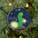 Cute green glow worm cartoon illustration ceramic ornament