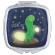 Cute green glow worm cartoon illustration compact mirror