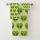 Cute Green Heart-Shaped Alien Head Pattern Bath Towel Set