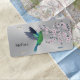 Cute colorful green hummingbird with pink cherry blossoms on a faux silver foil floral shimmering background. Customize it with your name.