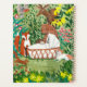 A cute modern hand painted jungle green floral garden with cute animals, flowers.