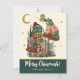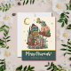Cute Green Mushroom Frog and Toad Merry Christmas Holiday Card
