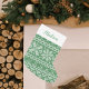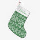Add a festive touch to your home and hearth this holiday season with custom holiday stockings! The custom stockings feature a green and white sweater pattern with a white band at the top. Personalize the Christmas stockings with your name or custom monogram.