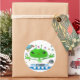 Cute Green Outer Space Aliens with Space Ship Classic Round Sticker