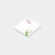 This cute post it note makes a great gift. This design features a cute green reindeer in the corner, with red ornaments on his antlers. In the top corner there is a personalized place ot put your name.